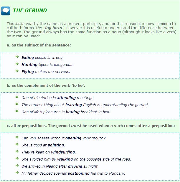 THE GERUND > THE GERUND